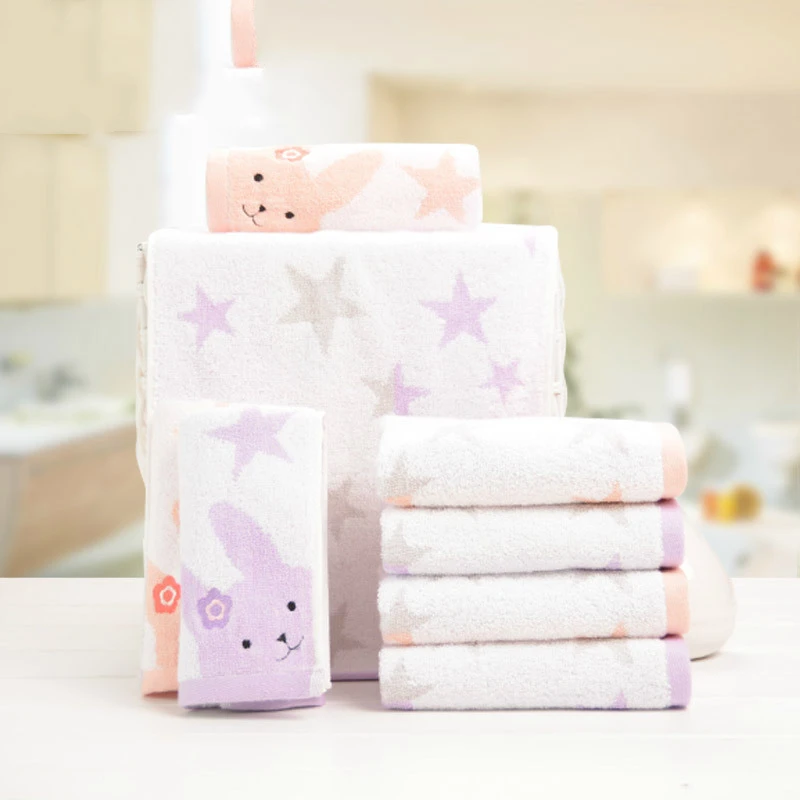 25x50cm Children's Cotton Jacquard Stars Pattern Cute Cartoon Washcloth Bathroom Bath Towel Kinderg